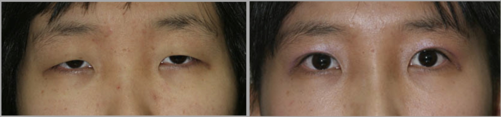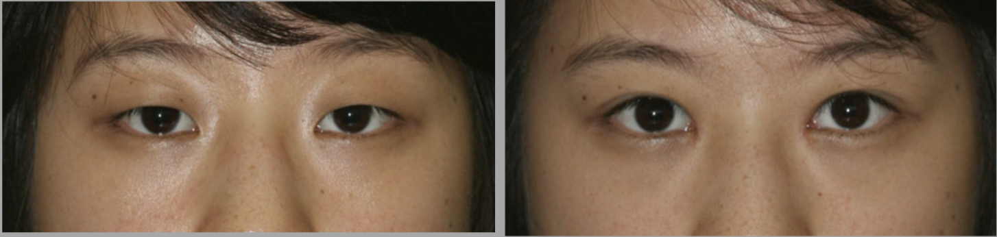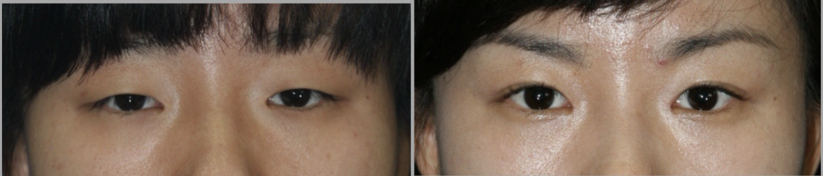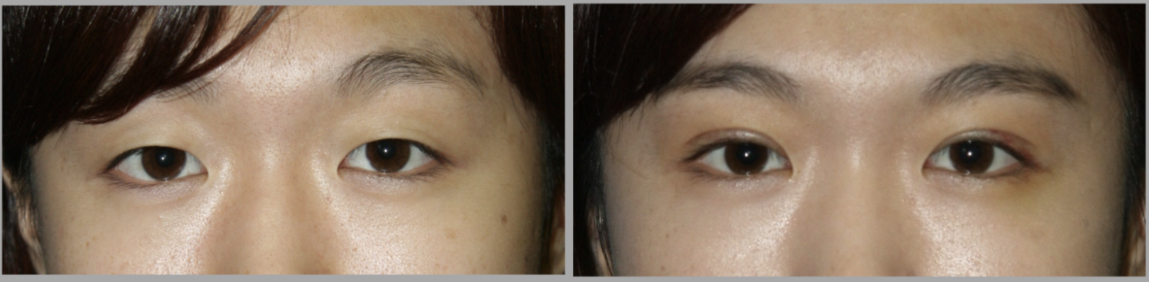 눈꺼풀 속의 눈뜨는 근육(levator)은 눈꺼풀 속의 단단한 검판(tarsus)이라는 구조물과 느슨하게 연결되어 있으면서, 눈뜨는 근육 힘줄과 주변 조직간의 유착이 되어 있는 경우도 많아서 눈꺼풀에 강한 힘을 주고 눈을 크게 잘 뜰 수 있는 경우는 서양인들에 비해서 적습니다.