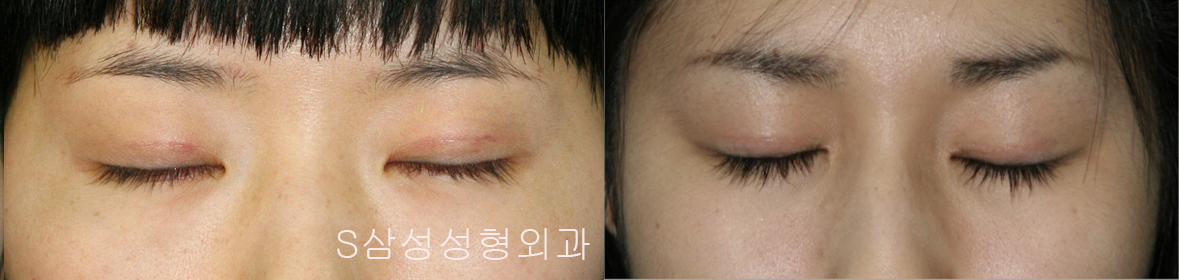 눈썹 높이가 낮은데 쌍꺼풀 선을 높게 잡아서 눈을 떴을 때 쌍꺼풀 두께가 원하는 정도로 나오도록 하게 되면, 눈을 감은 상태에서 보면 너무 높은 위치에서 보기싫을 정도로 큰 쌍꺼풀을 만들어주게 되는 셈입니다.